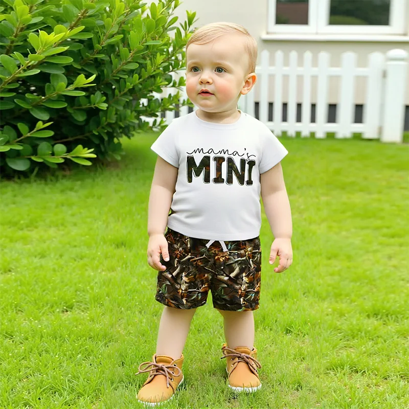 Toddler Boys Summer Outfits Letter Print Round Neck Short Sleeve T-Shirts Elastic Waist Shorts 2Pcs Clothes Set